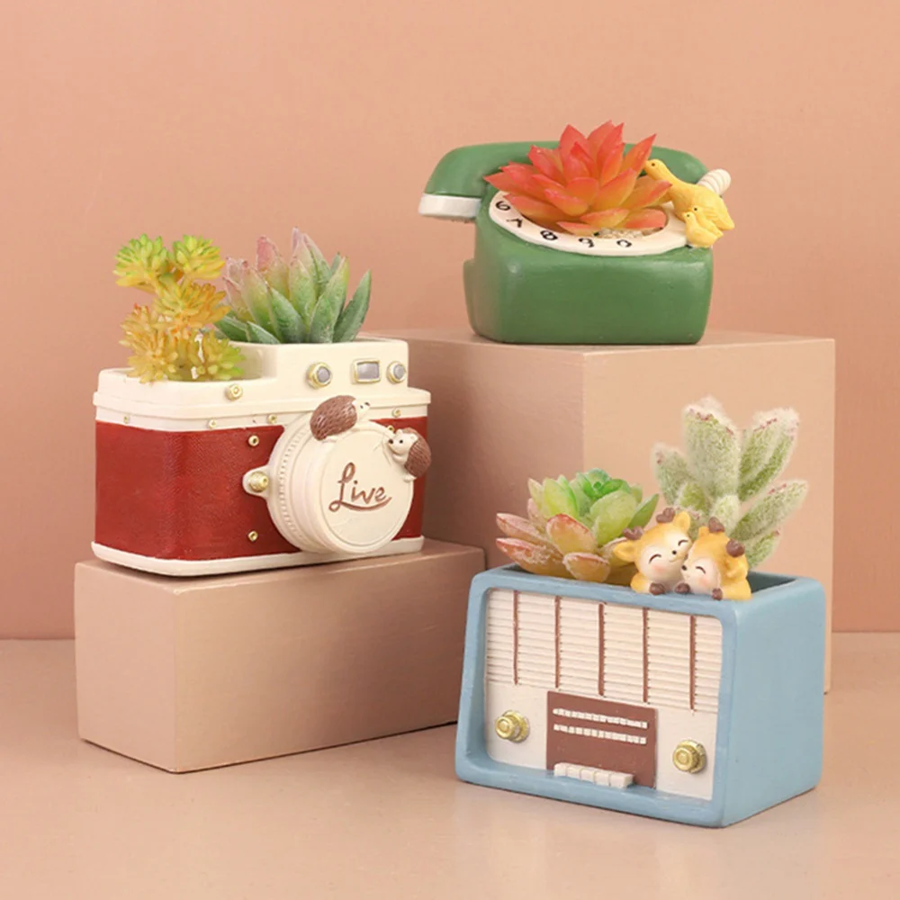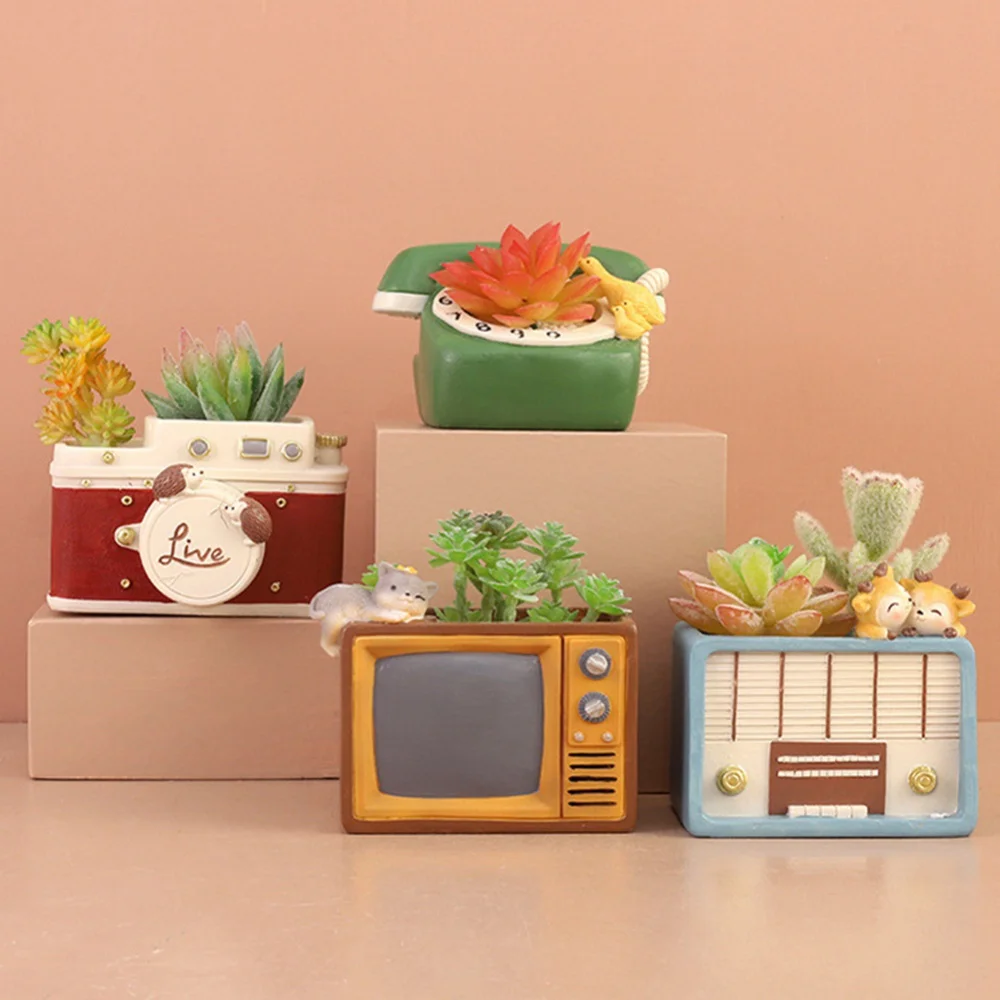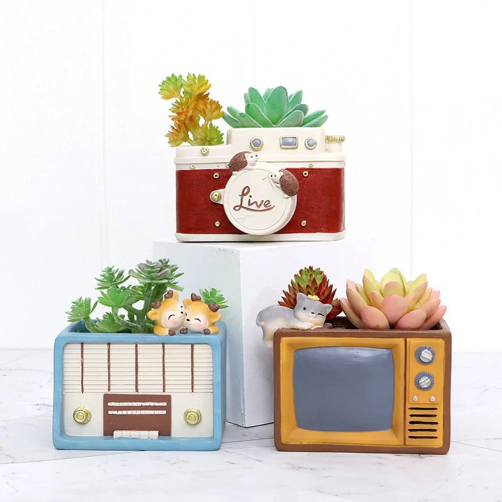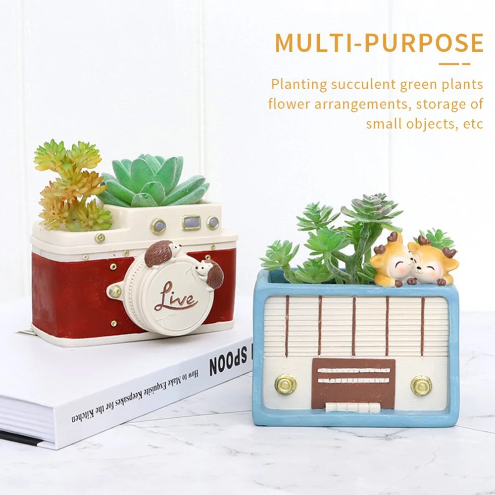 1. Цветочный горшок в стиле ретро изготовлен из полимерного материала, каждый стиль отличается, есть маленькие животные, трехмерные формы и цвета, расписанные вручную.