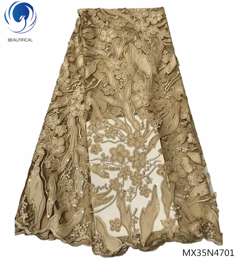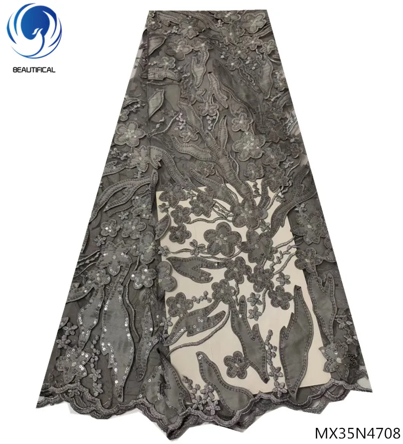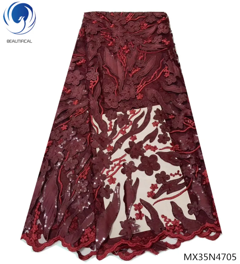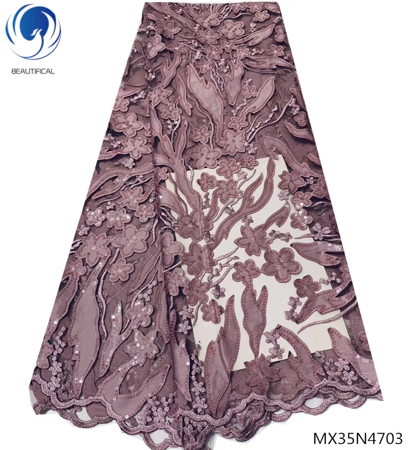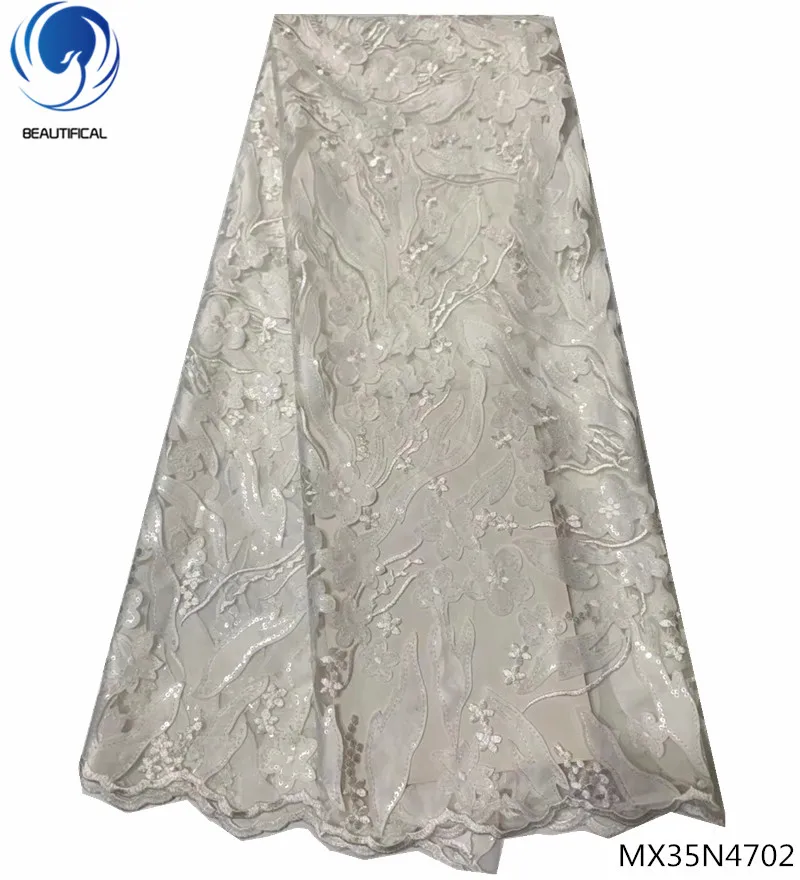 Красивая ткань с блестящим кружевом нигерийская кружевная ткань 2018 блесток кружевная африканская ткань горячая распродажа мода 5 ярдов/шт MX35N47