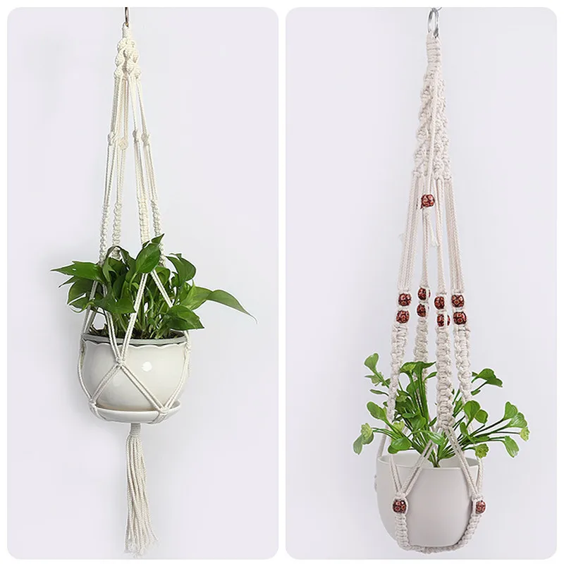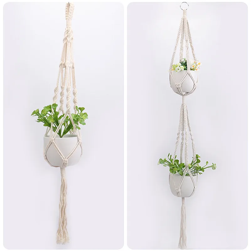 Модная винтажная Подвеска для растений из макраме, домашняя подвесная корзина, джутовая веревка, новый хлопковый и льняной висячий цветочный горшок, сетка