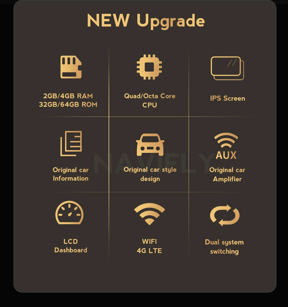 Поддерживает все оригинальные функции NTG, такие как заводское радио, gps-навигация, bluetooth, DVD/CD,USB,SD и т. д., поддержка заводской камеры заднего вида обратного траектории., 360 камера, дверная открытая warnig, совместима с оригианским джойстиком, сенсорной мышью и управлением рулевым колесом, совместима с оригинальной звуковой системой и оптическим волокном, воспроизведение звука без потерь.