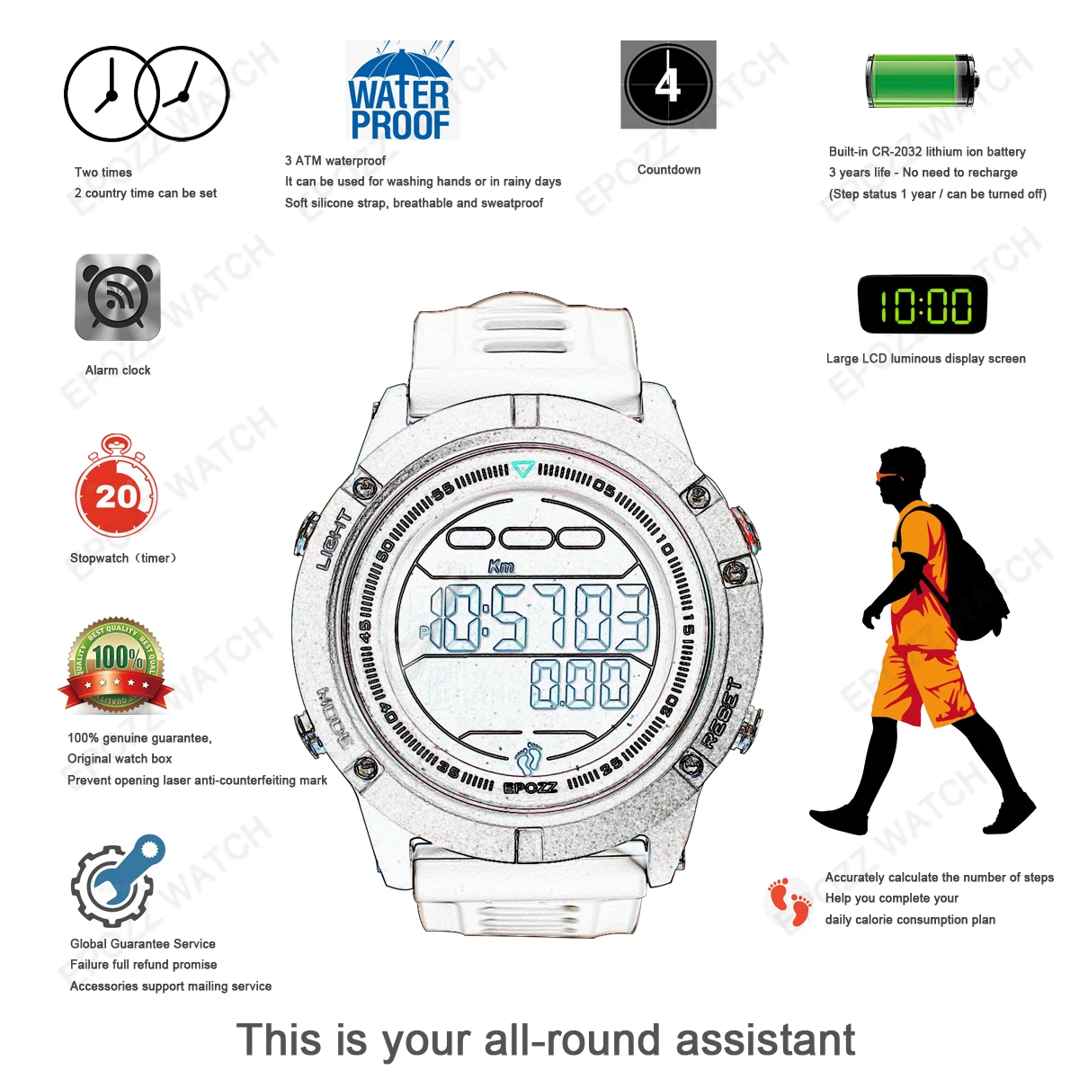 Этот счетчик шагов имеет функции и внешний вид обычных часов. Но он встроен в датчик. Вы можете установить свой рост, расстояние каждого шага и количество прогулок в день в шагомере, который вы можете увидеть на экране ход плана ходьбы.