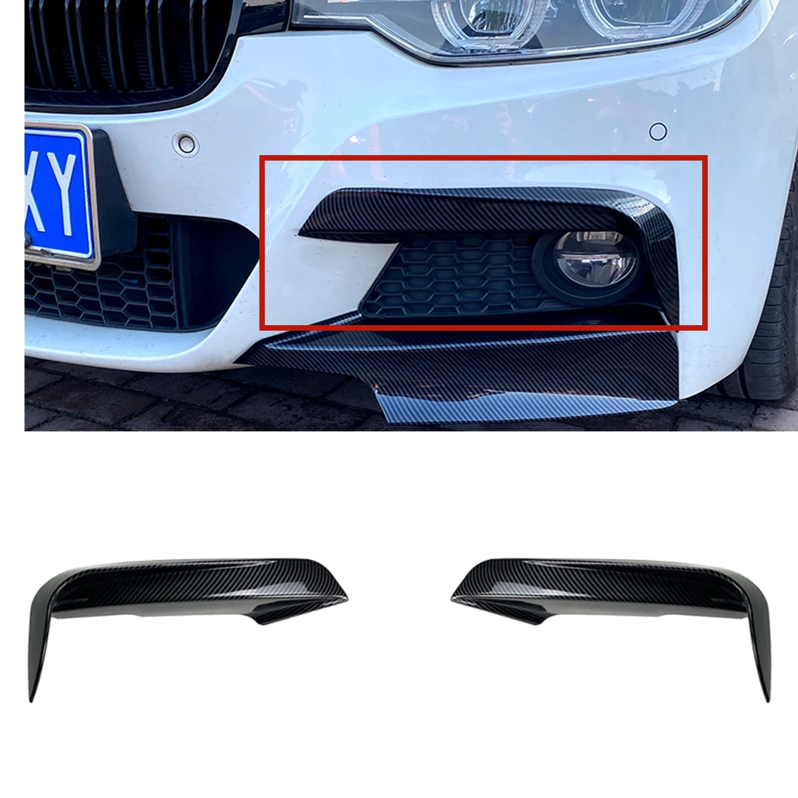 Для BMW 3 серии F30 M Sport 2012-2018 передний бампер боковой сплиттер для губ из углеродного волокна вид автомобиля противотуманный светильник крышка Canard вентиляционное отверстие отделка