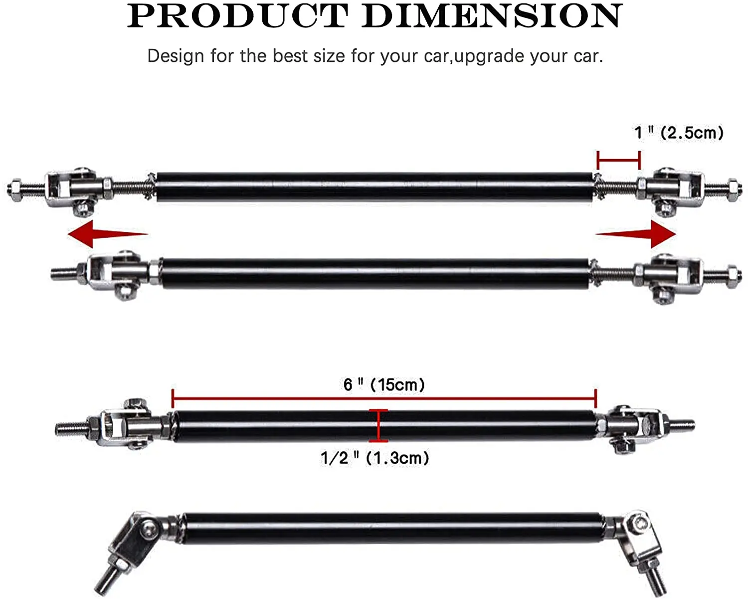 Эти передние опорные стержни используются для укрепления переднего сплиттера или заднего диффузора. Универсальный подходит для любых автомобилей SUVs trucks, если вам нужно расширить стержень стойки, вы можете продлить его длину от 8 "до 11".