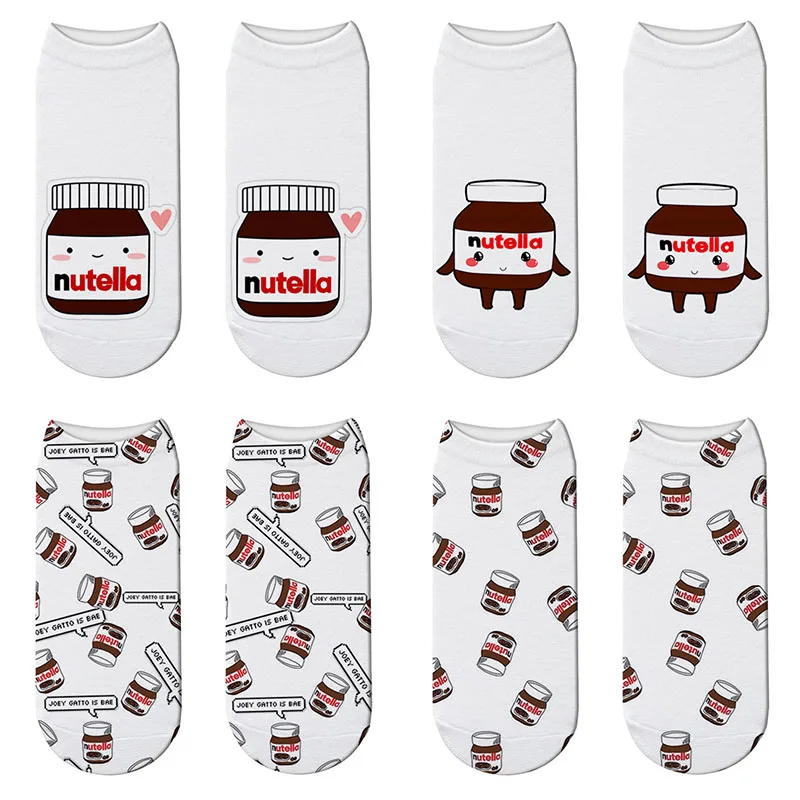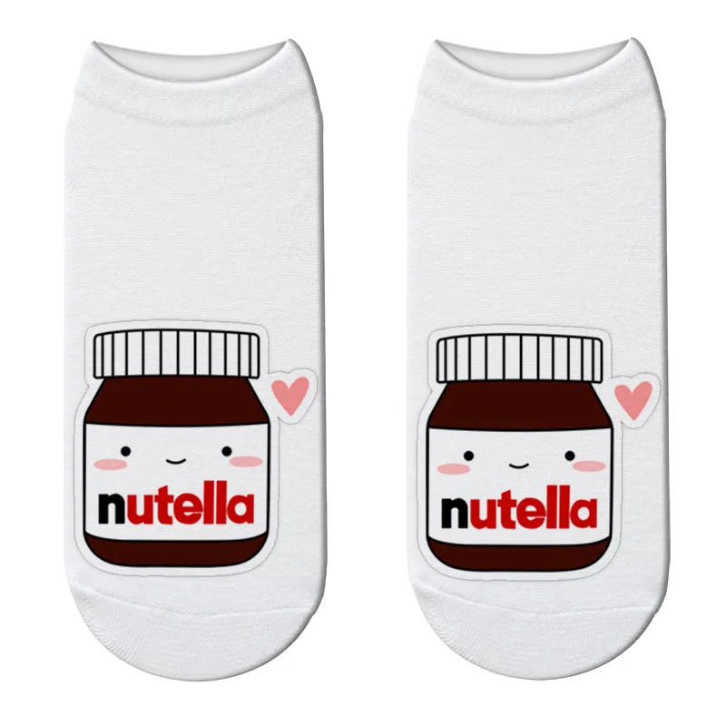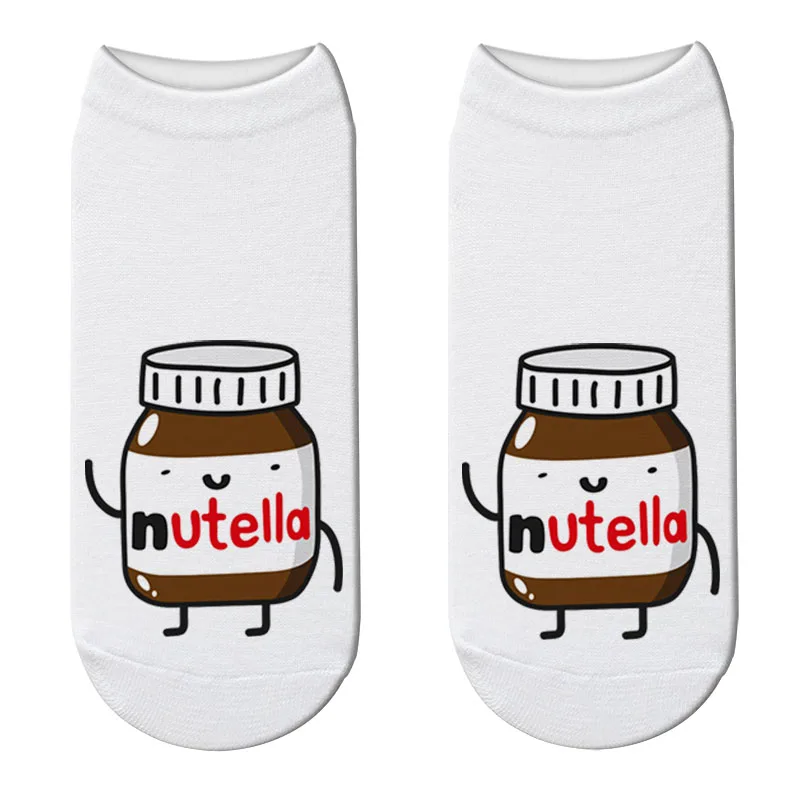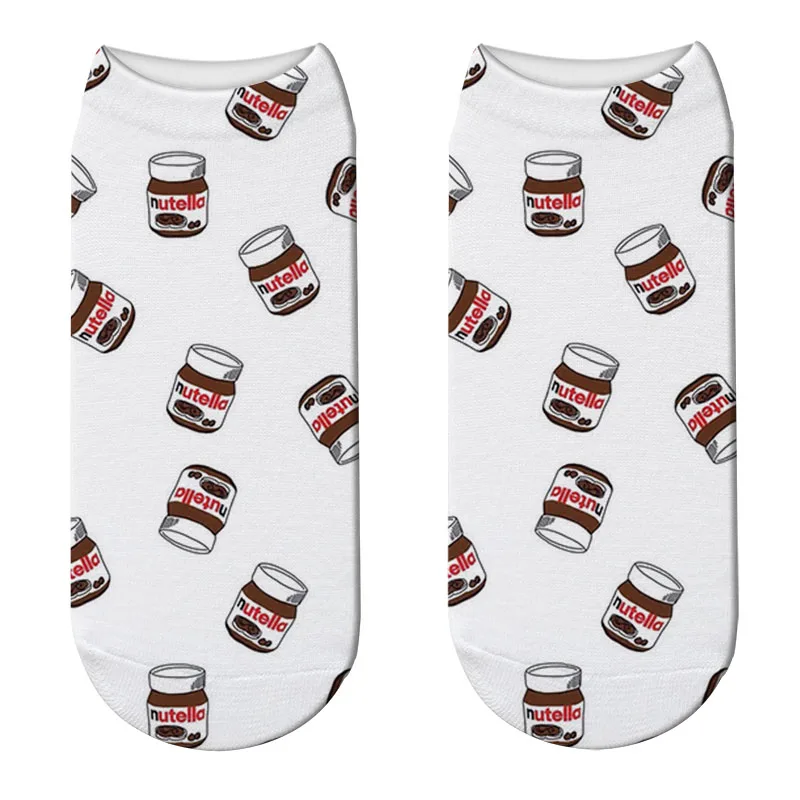 Новые короткие носки с 3D принтом Nutella, забавные женские модные носки с героями мультфильмов, Kawaii Nutella, короткие носки, Прямая поставка