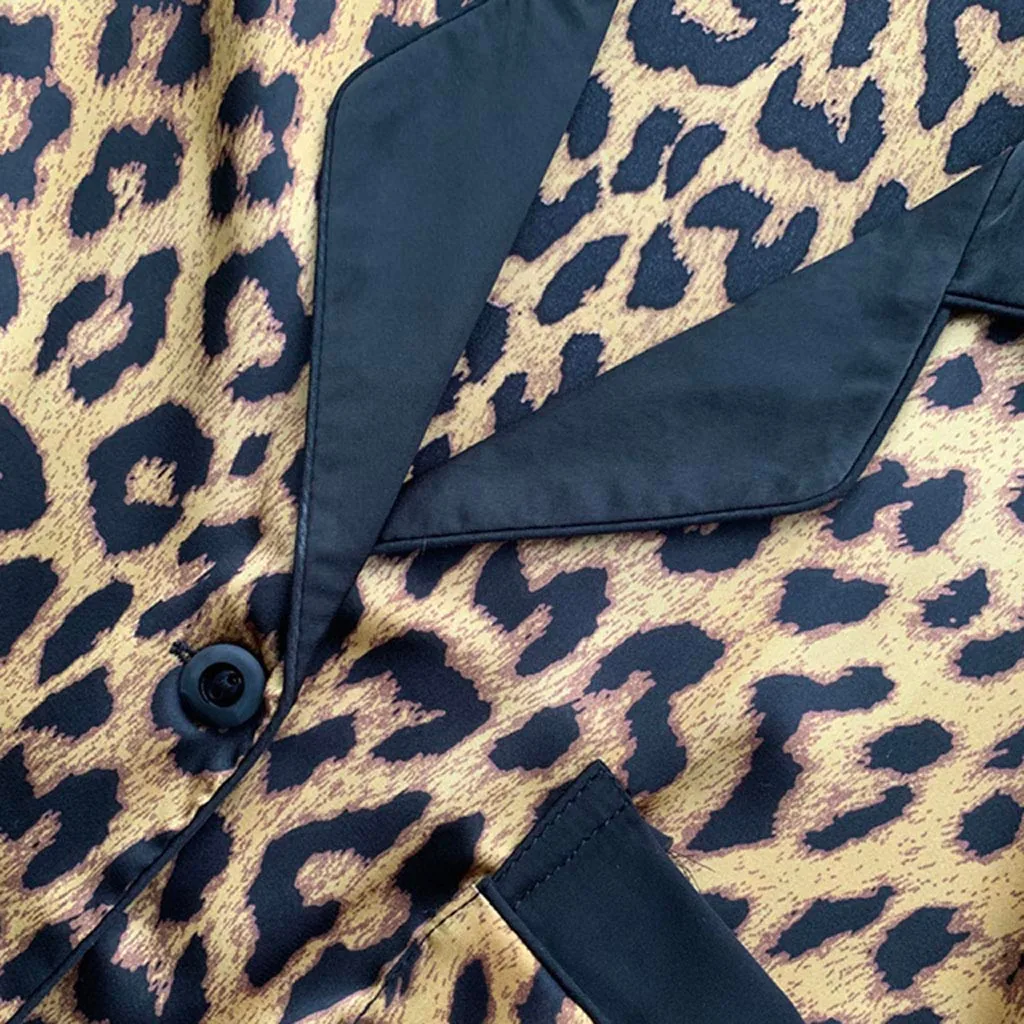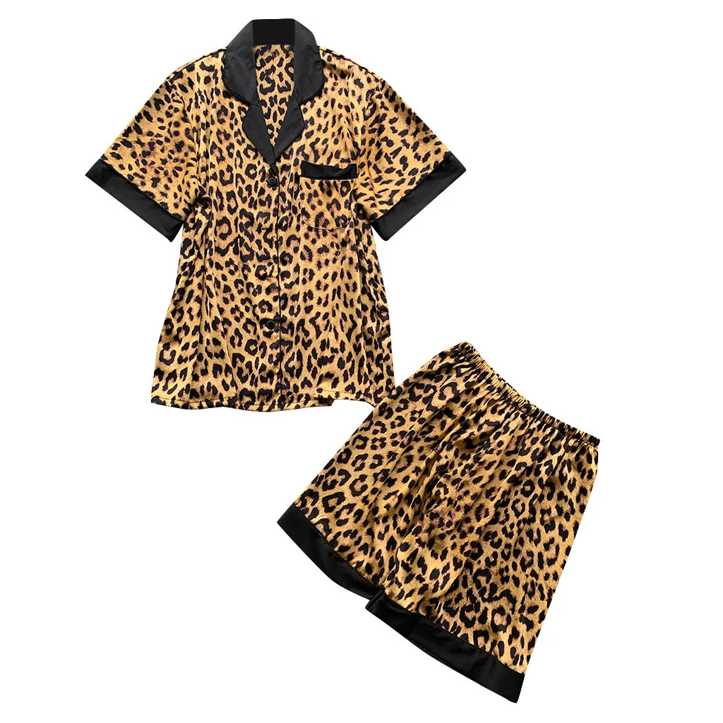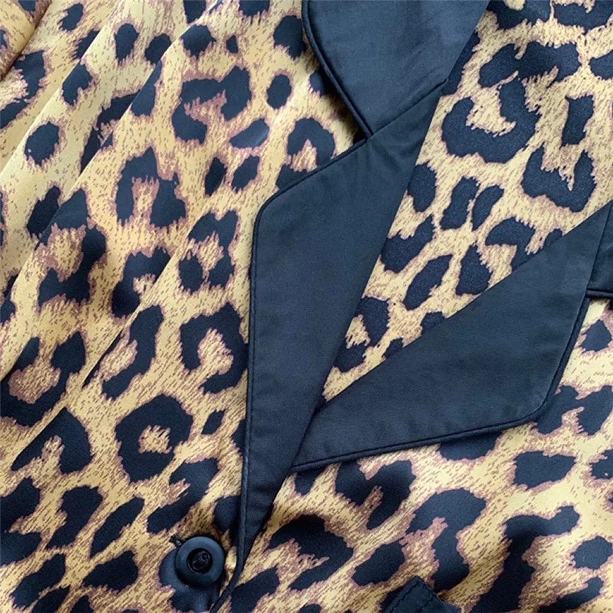 Сексуальное женское белье, ночная рубашка, женская пижама с леопардовым принтом, имитация шелковых пижам, одежда для сна, комплект ночного белья, халат, ночное платье