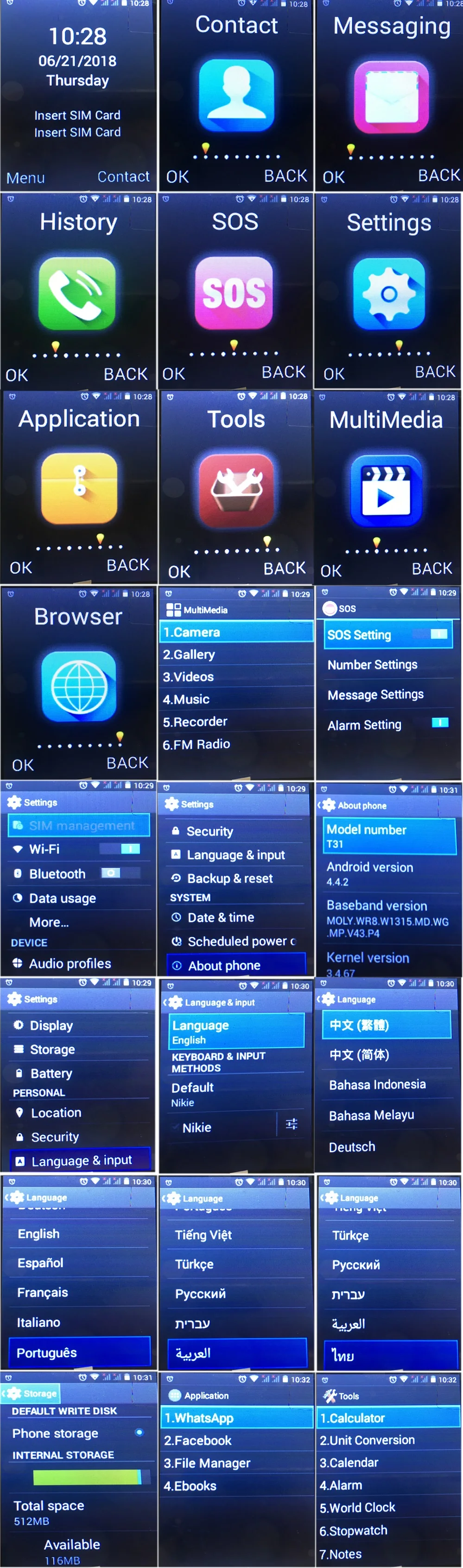 Количество ядер процессора2-ядерныйТип телефонаМобильный телефонСенсор основной камерыДругоеСоотношение сторон экрана4:3Оптическое увеличение (зум)НетНачало продаж2018Тип сенсорного экранаБез сенсорного экранаБез привязки к операторуДаВремя в режиме ожиданиядо 24 чНазвание брендаYingtaiДизайнFlipЯзыкАнглийскийЯзыкРусскийЯзыкНемецкийЯзыкФранцузскийЯзыкИспанскийЯзыкПортугальскийЯзыкВ итальянском стилеЯзыкТурецкийЯзыкHebrew,Thai,Indonesia,Melayu,VietnameseЯзыкАрабскийРазмер экрана2,4"Тип матрицыЖК-дисплейЕмкость батареи (мА*ч)800mAhТип экранаСтандартныйТип интерфейса для зарядного устройстваMicro-USBОперационная системаAndroidСтандарты сотовой связи2G (GSM)Состояние товараNewКоличество SIM-карт1Оперативная память512 МБВстроенная память2 ГБРазрешение дисплея480X360Тип батареиСъемныйМарка процессораMTKПорт для наушников 3,5 ммЕстьКоличество фронтальных камерNONEПоддержка быстрой зарядкиНетКоличество основных камер1Биометрические технологииНетРазрешение основных камер≤1 МПРазрешение фронтальной камерыОтсутствуетПоддержка беспроводной зарядкиНетNFCНетЕдиница измерения100000015Метод продажsell_by_pieceКоличество1Вес в упаковке0.300Размер в упаковке, Длина, см30Размер в упаковке, Ширина, см20Размер в упаковке, Высота, см10ModelYINGTAI T31CPU ManufacturerMTK 6572 Dual Core2GGSM 850/900/1800/1900MHz,3GWCDMA 850/900/2100MHz,Memory256MB+512MBTF cardsupport TF card extension up to 32GB maximallyOther featureswhatsapp,Wi-Fi,Bluetooth, torch, MP3, video, FM,Default LanguagesEnglish, Russian, French, Spanish, German,Italian,customize.FM RadioYes, need plug in earphonelimit the quantity200Play storeNOVirtual mouseLong press"0"can openSize104mm*51mm*12mmBattery Capacity800mAhROM<2GGoogle PlayNoRecording Definition360PFeatureGPRS, Message, QWERTY Keyboard,Memory Card Slots,Rear Camera0.3MPCPUDual Core