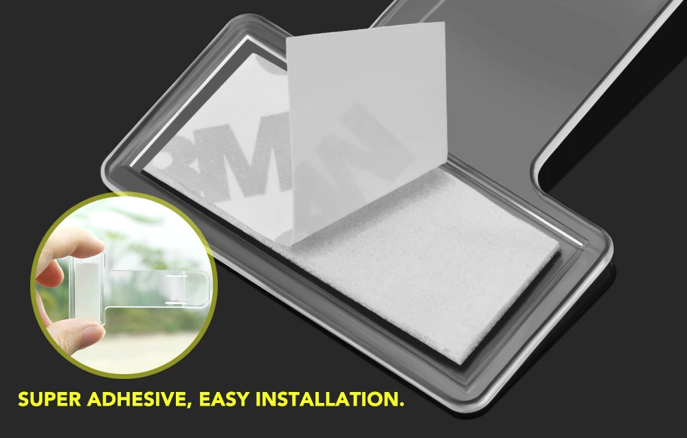 Легко крепится с клейкой лентой 3M на внутренней стороне ветрового стекла
